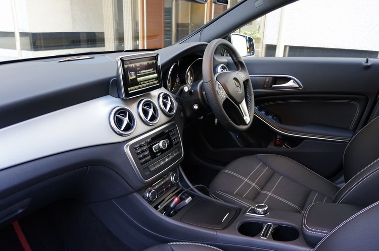 今まで乗っていたベンツC240が相当古くなったのと、購入するなら消費税が上がる前にと思い検討していたベンツCLA180が注文後約2か月後の本日納車された。(CLA180内部) |