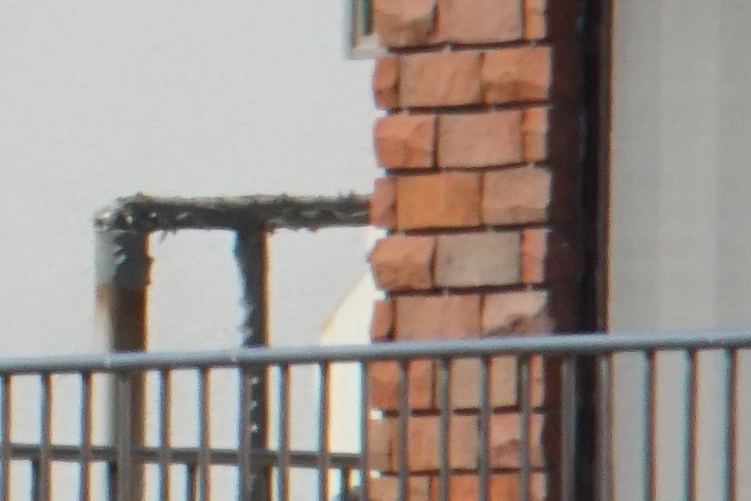 a) 色収差もなく周辺でのボケもなく前回評価した無名のものとは比較にならないほど性能がよい。55-210mmズームレンズ(望遠側)にテレコンバージョンを付けて撮影すると圧縮画像では両者の違いが分かりにくいものの、等倍でみるとやはり画像が僅かにボケている。テレコンバージョンレンズを使わず画像をトリミングした方が、僅かに画像が綺麗である。フォーカス・コントラストが僅かに甘くなるようで、マニュアルフォーカスでピンとを合わすと若干改善されるときがある。
