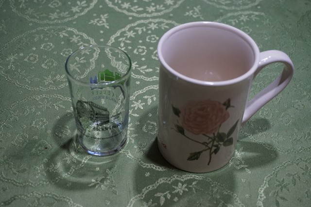 ワイン試食時にくれたグラスとオーストリアで飲んだウインナーコーヒーのコップ